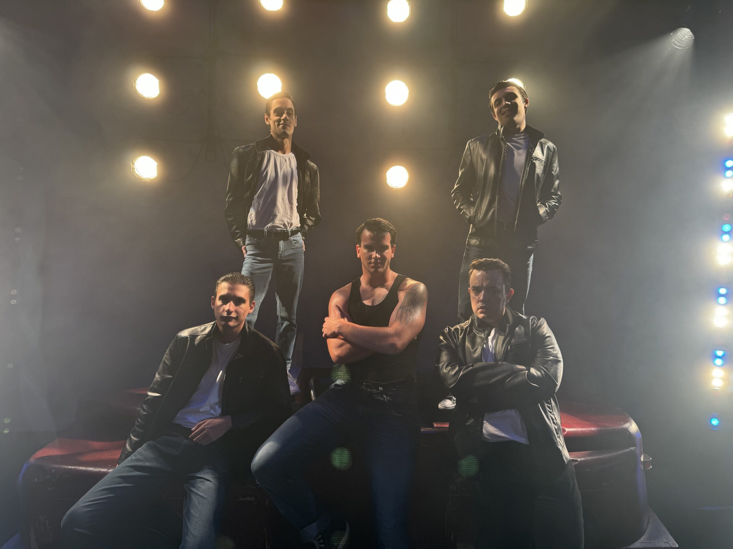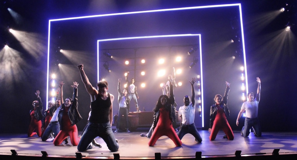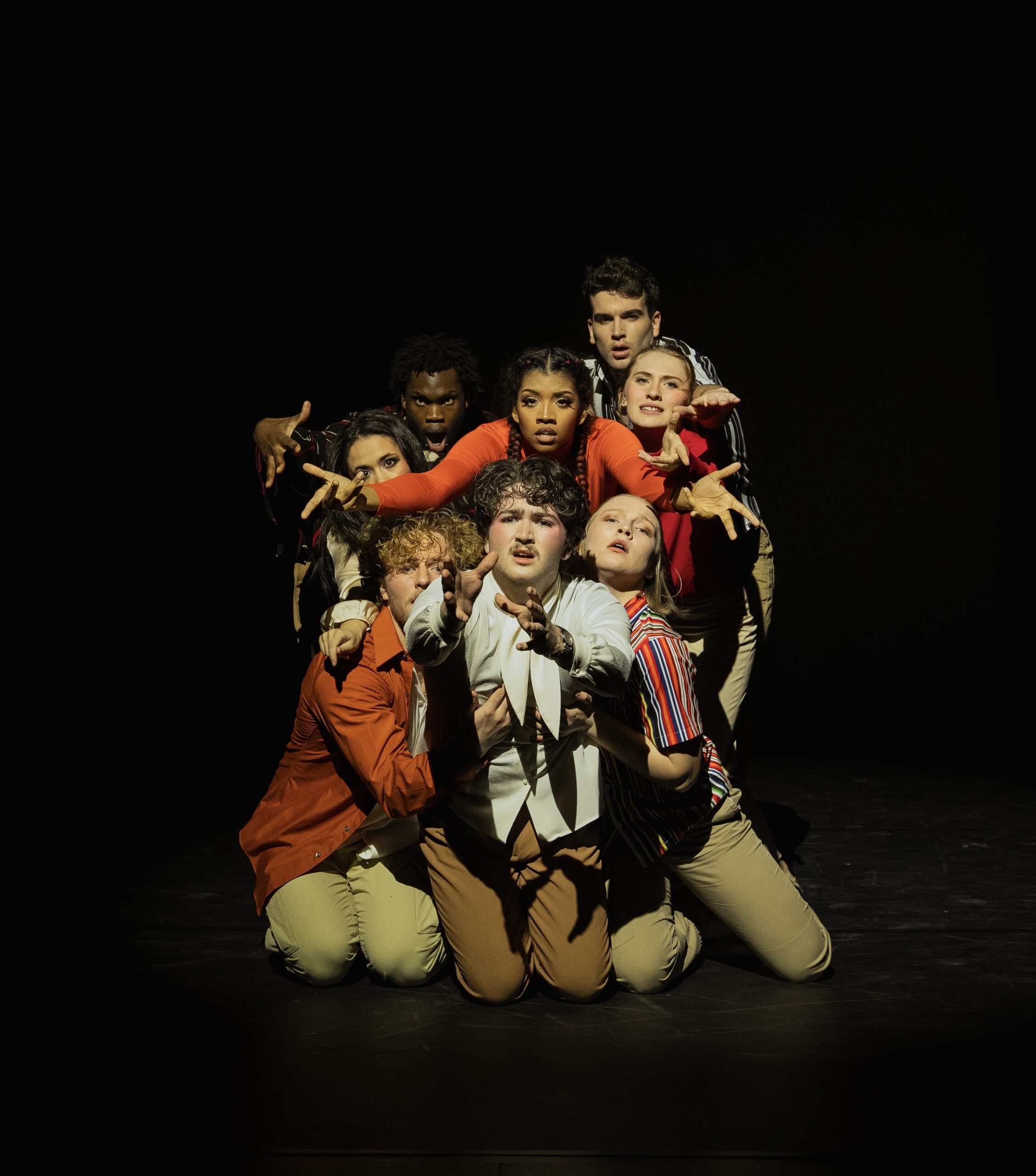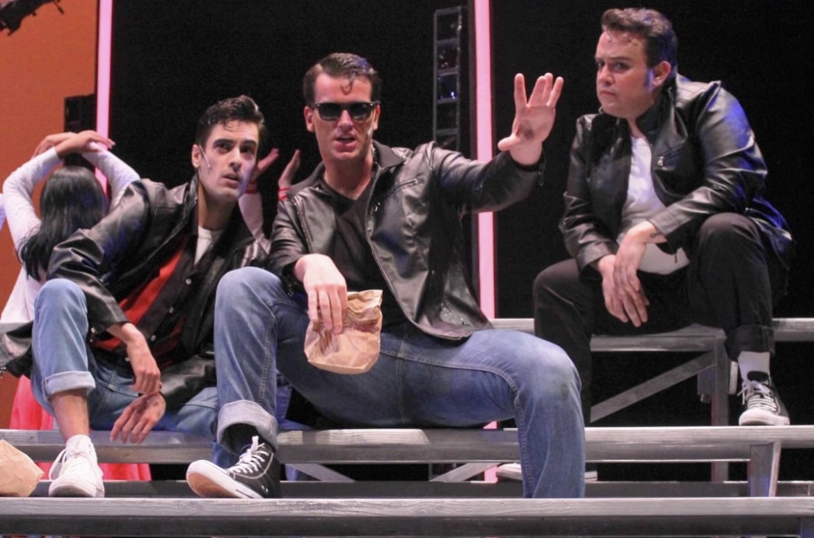 • Actor Ryan Griffin Singing passionately with hand raised in sky