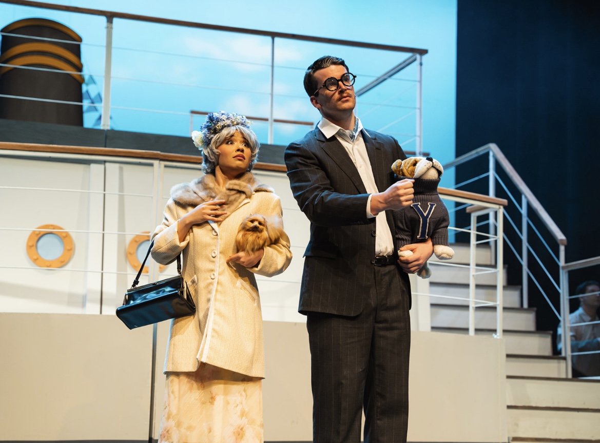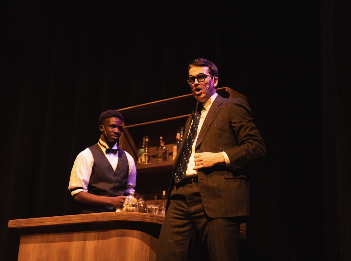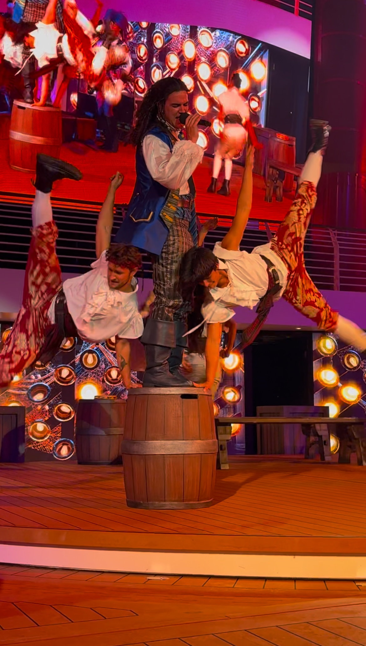 • Actor Ryan Griffin Singing passionately with hand raised in sky